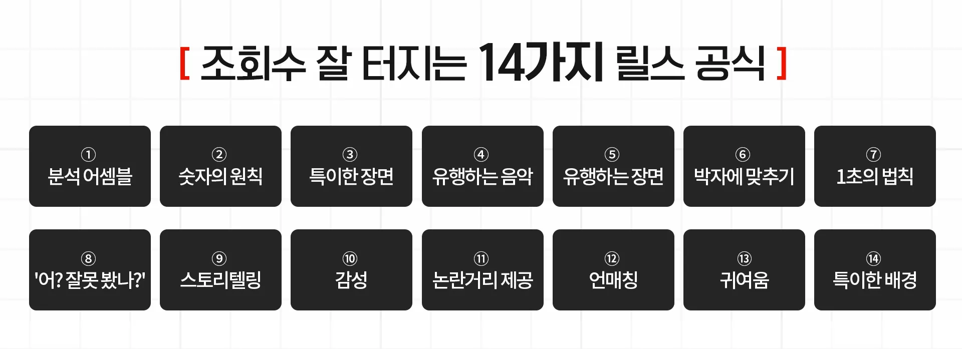 자청 대표님께서 잘 터지는 영상들의 공통점을 14가지 유형으로 정리해 공식화하셨습니다. 이 공식을 활용하면 우리 영상도 100만, 200만 조회수를 찍을 수 있어요.