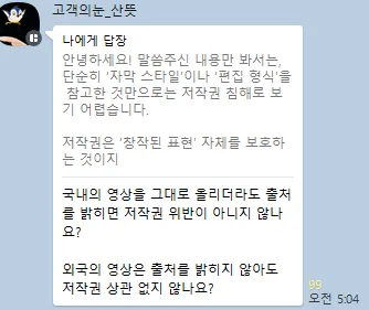 저작권은 ‘창작된 표현’ 자체를 보호하는 것이지, 아이디어나 형식(ex. 자막 위치, 폰트, 색상 구성 등)은 보호 대상이 아니기 때문입니다.