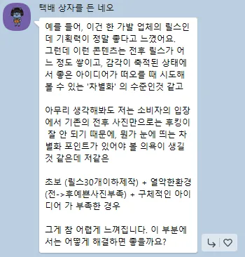 그래서 요즘은 단순한 전후 비교보다는, 후킹력 있는 말 한마디 / 상황극 / 고객 스토리 / 인물 중심의 감정 포인트 같은 요소가 들어간 콘텐츠가 더 반응을 얻는 경향도 있어요.