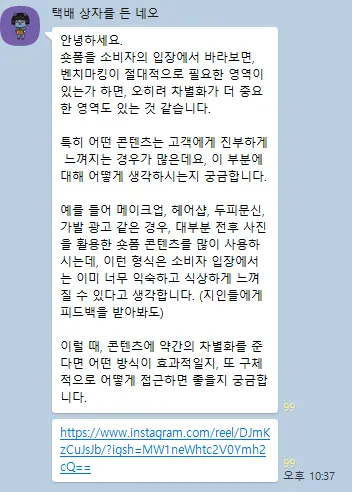 레퍼런스로 드신 사례처럼, 센스 있는 콘텐츠는 기획력 + 경험 + 시행착오의 결과물이에요.