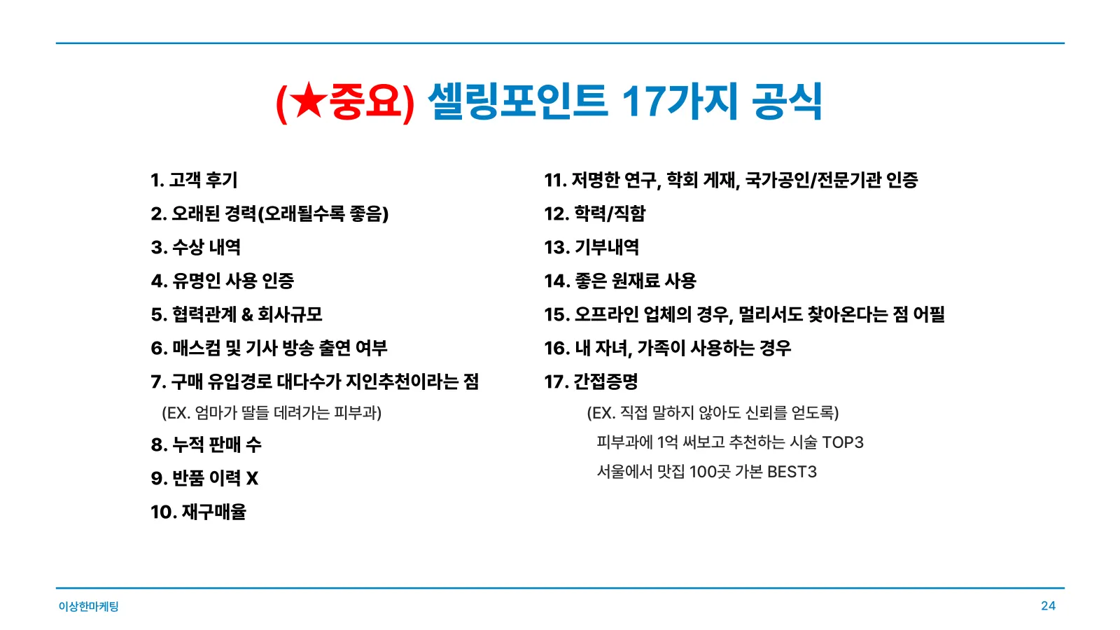 예: "1:1 맞춤 관리", "10년 경력", "결과 보장", "가장 빠른 배송" 등
